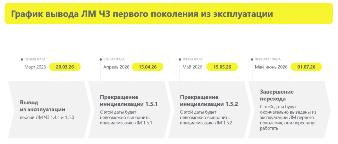 Исходя из данных, которые мы получили от разработчиков ТС ПИоТ и Честного знака на текущий момент допустимо использовать версию ЛМ 1.5.2 до прекращения поддержки и инициализации. С 01.07.26 будут окончательно выведены из эксплуатации ЛМ первого поколения. Это значит, что необходимо будет устанавливать ЛМ второго поколения и выполнять инициализацию повторно.