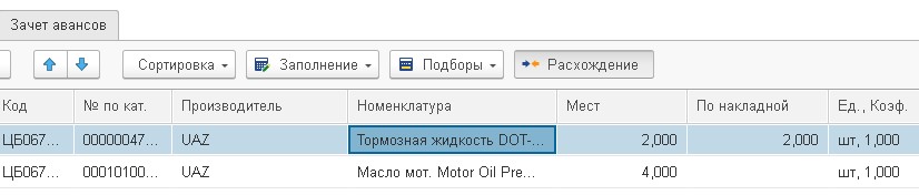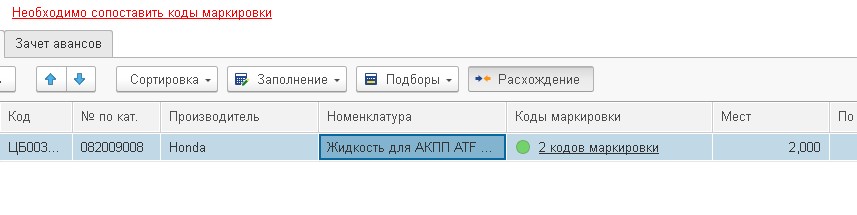 В приходной накладной пропали коды маркировок