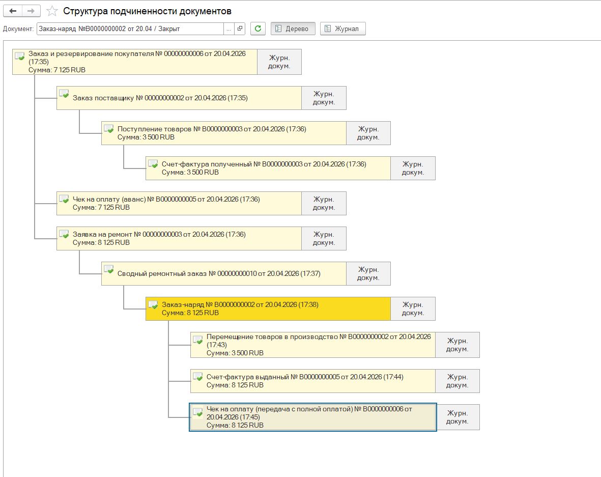 Добрый день! Есть некоторое непонимание того, как работает механизм заказа и резервирования. Ситуация такая: клиент записывается на диагностику (бесплатный ремонт), ему проводят диагностику — в результате выявляется необходимость замены запчасти. Заказ-наряд с диагностикой закрывается, формируется заказ и резерв на запчасть. После заказа поставщику и поступления товар распределяется автоматически. В заказе и резервировании отображается статус «Готов к отгрузке», и в таблице стоит «зарезервировано 1». Далее идёт звонок клиенту для записи на ремонт (документ создаётся отдельно, без основания, с видом «Гарантия»). На основании этого документа создаётся заказ-наряд — клиент и автомобиль во всех документах, кроме заказа поставщику и поступления, одинаковые. В заказ-наряде товар подбирается через «Подбор по списку заказанного» — товар заполняется, но переместить его в производство нельзя из-за отсутствия на остатках (товар зарезервирован). Переместить можно только если снять резерв. Повторюсь: клиент в документах один и тот же. Если создавать заказ-наряд на основании заказа и резервирования, то возможность переместить товар в производство есть. Но если из заказа сначала создать запись на ремонт (для бронирования времени), а потом из неё создать заказ-наряд, то переместить в производство невозможно. Как работает резерв? Резервирование происходит на клиента, договор, заказ-наряд или вообще на всё вместе? Как правильно организовать передачу в производство заказанного и зарезервированного товара, если необходимо предварительно забронировать за клиентом время приезда? Проверялось в релизах 6.1.22.11 и 6.1.23.18.