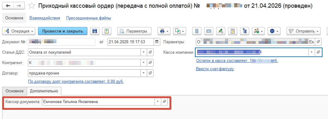 Оно берется из данных карточки Пользователя(e1cib/list/Справочник.Пользователи), который нажал кнопку Пробить чек.