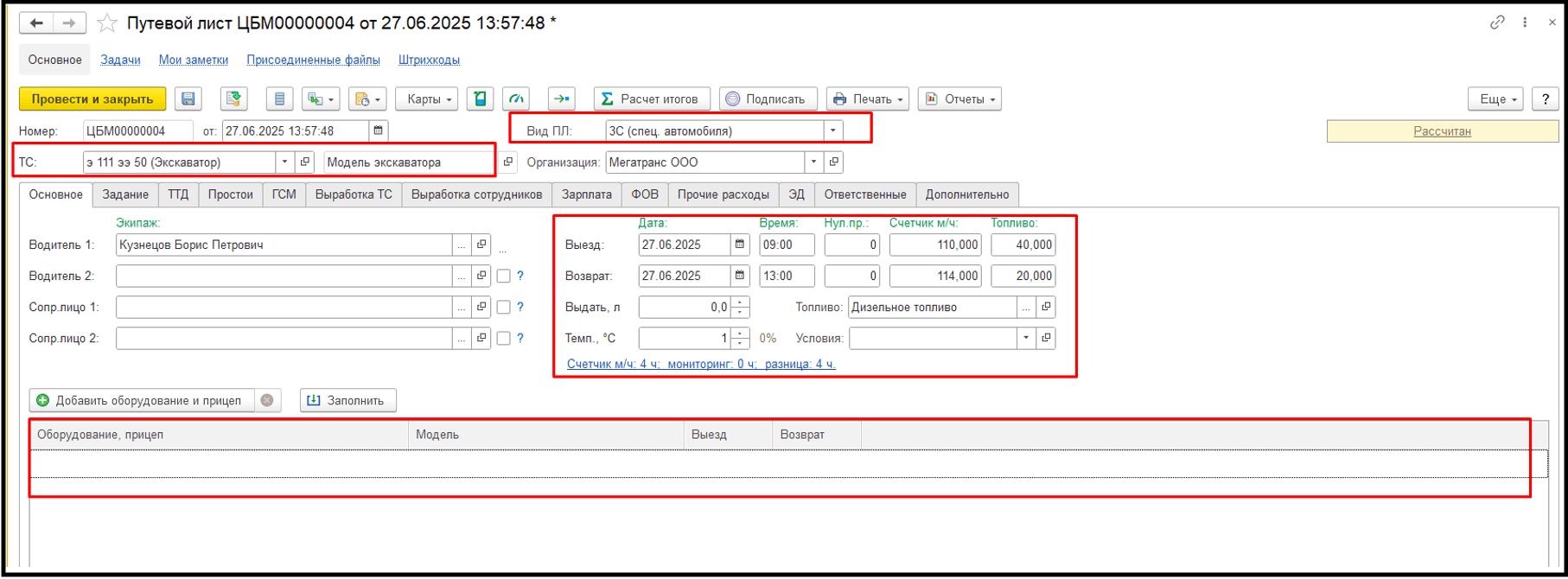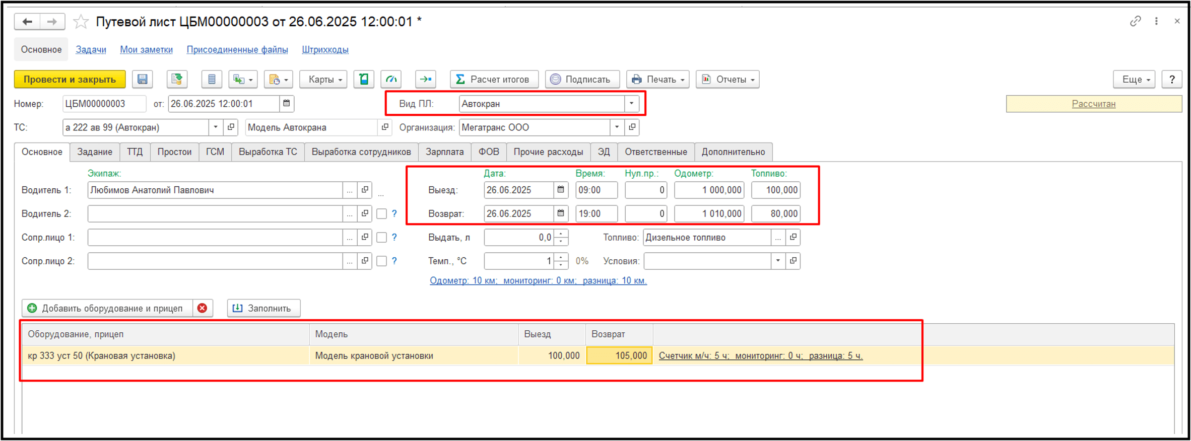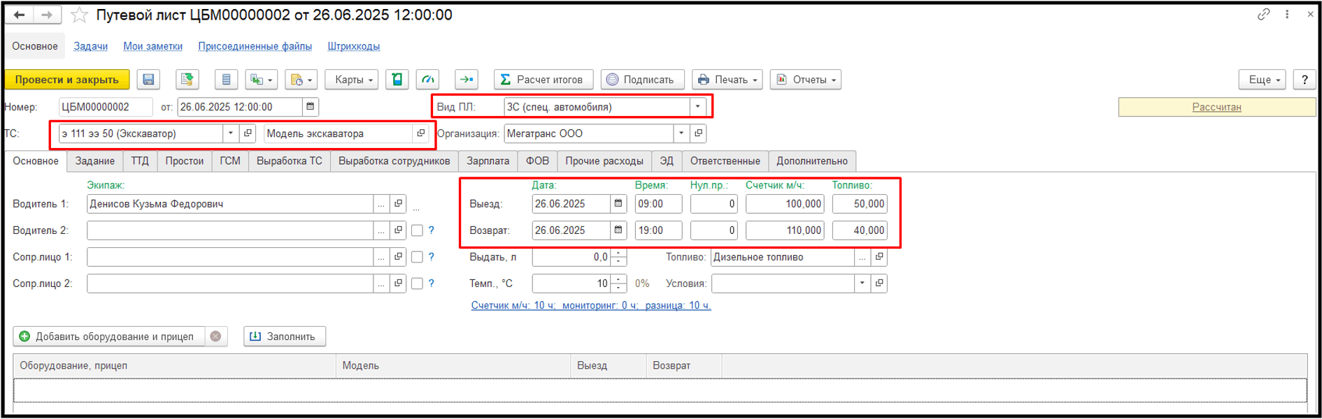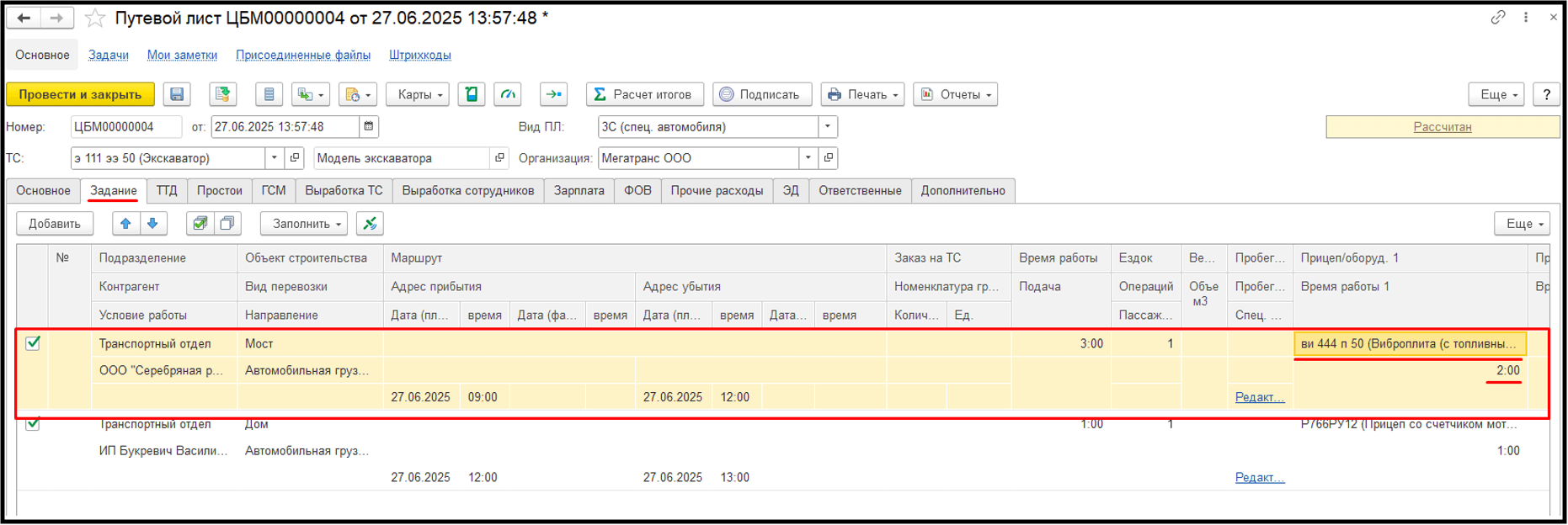 - Отразите работу автомобиля и навесного оборудования в путевом листе.