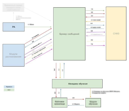 - Организация процесса управления. Через управляющие команды можно регулировать процесс обучения моделей, детектора, взаимодействия с сервером обучения и многое другое.