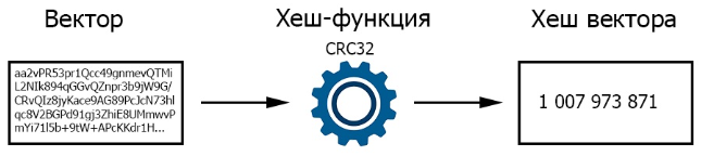 Для решения данной задачи в системе управления машинным зрением используется хеширование. При формировании для каждого вектора изображения расчитывается хеш-код, который фиксируется вместе с вектором. При выполнении операции поиска по вектору сначала вычисляется хеш-код вектора. Далее поиск выполняется уже по хеш-коду вектора, что значительно быстрее с точки зрения производительности. Для осуществления хеширования в системе управления машинным зрением используется алгоритм CRC32.