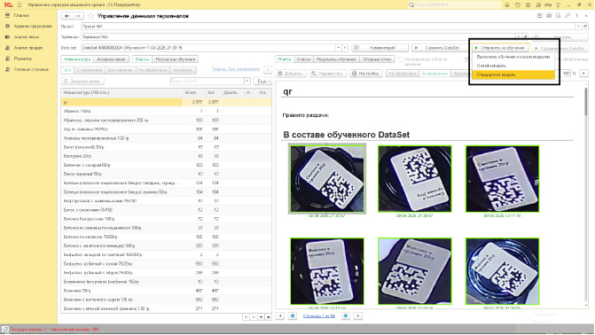 - Формирование и отправка датасета на обучение из собственной системы управления Машинным зрением