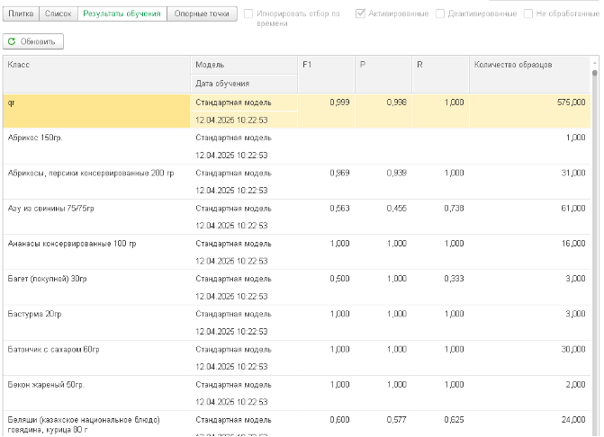 При обучении модели используются только активированные изображения. Ввиду этого нужно отметить важность выполнения своевременной валидации изображений группы «Не обработанные». В результате изображения этой группы будут отнесены или к активированным, или к деактивированным. Это, в свою очередь, позволит использовать больше актуальных «хороших» изображений при обучении модели.
