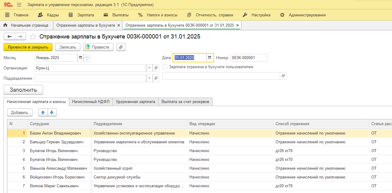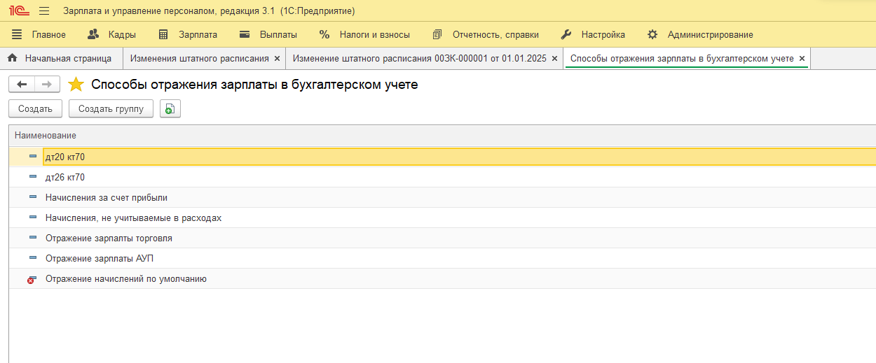 В «1С:Зарплата и управление персоналом» используется механизм способов отражения зарплаты в бухгалтерском учете. Он определяет, каким образом начисленная зарплата сотрудников будет отображена в бухгалтерии и на каких счетах появятся соответствующие суммы.