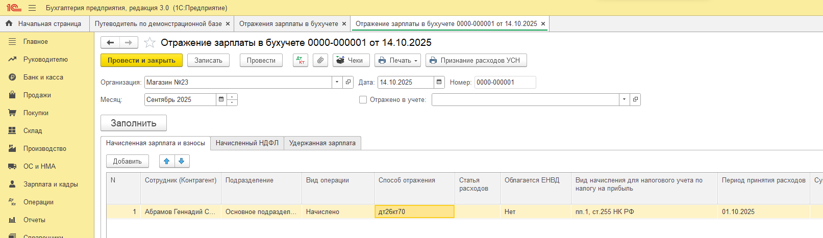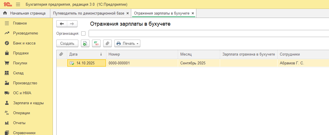 Документ «Отражение зарплаты в бухучете» в 1С:Бухгалтерии.