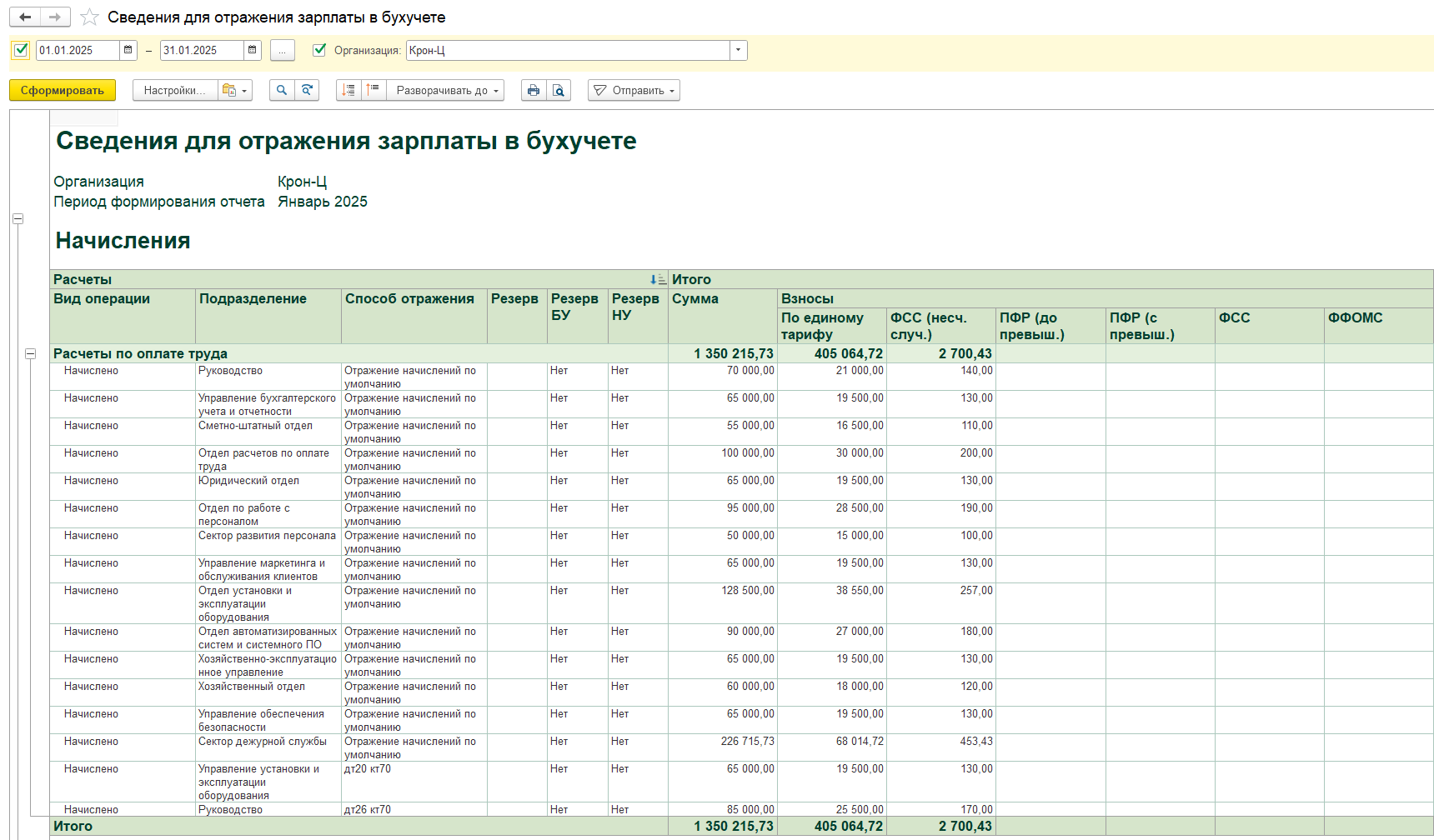 Отчет «Сведения для отражения зарплаты в бухучете».