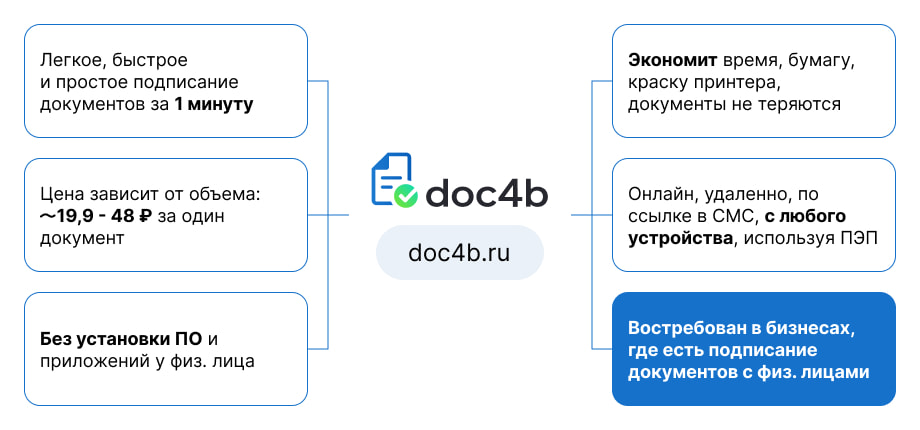 - Взаимодействие с сервисом DOC4B осуществляется на основании публичной оферты. Регистрируясь, пользователь соглашается с ее условиями.