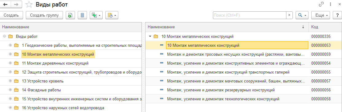 Справочник «Виды работ» — систематизирует и классифицирует различные виды работ, обеспечивая тем самым структурированное представление о выполняемой деятельности.