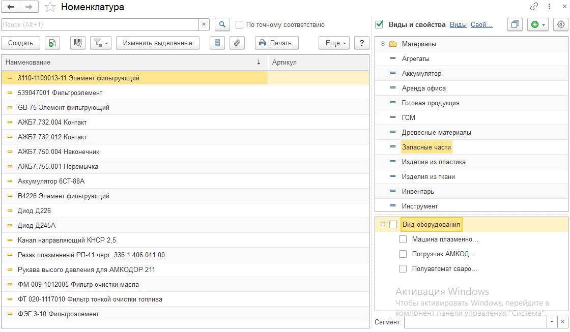 1. «Номенклатура» — создать материалы, которые будут использоваться при строительстве объекта.