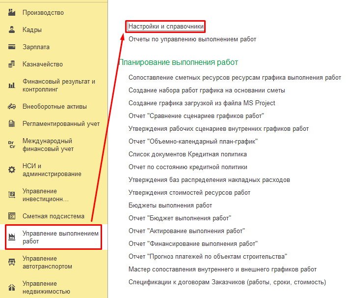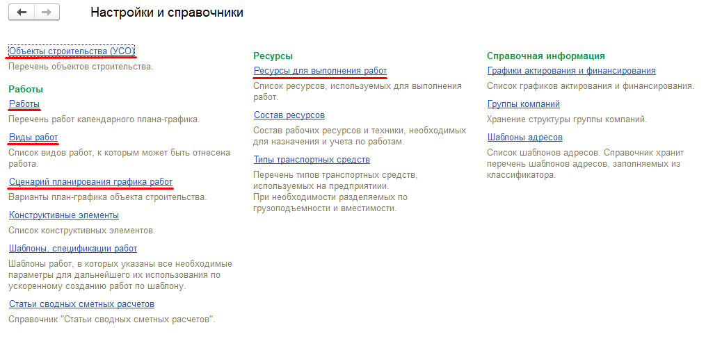 Справочники учета работ в 1С:ERP Управление строительной организацией 2 и последовательность их заполнения