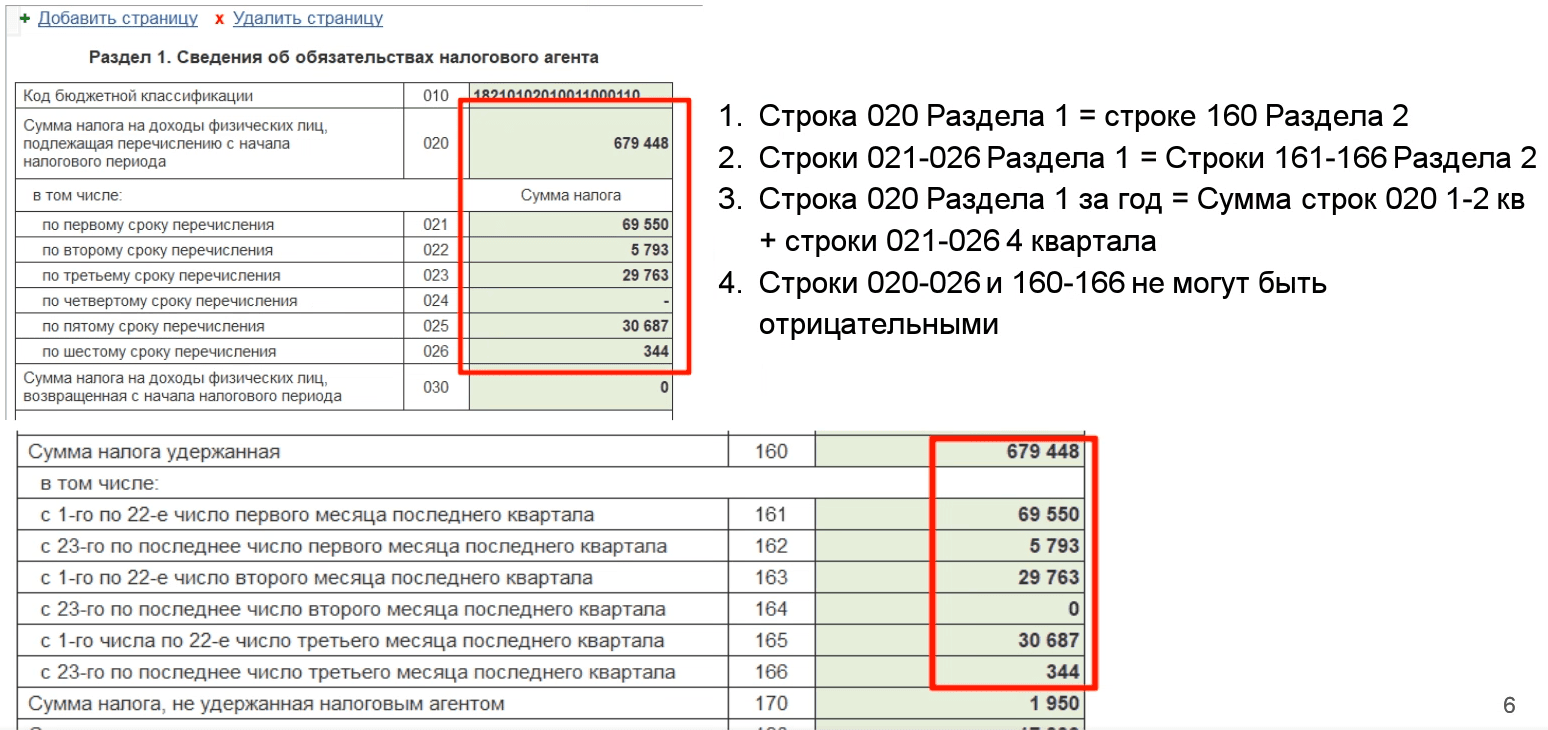 - Как проверить взаимосвязь строк раздела 1 и раздела 2 в 6‑НДФЛ?