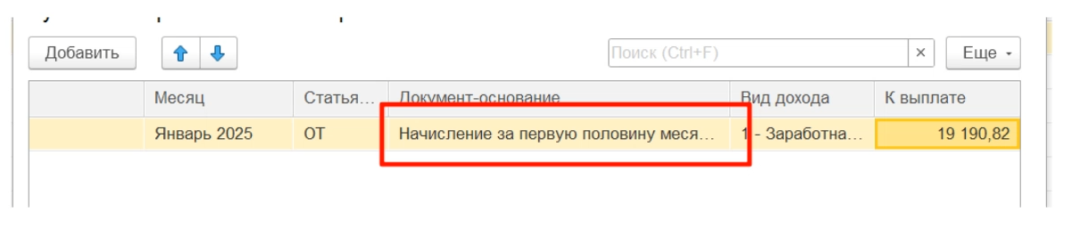 Если начисление выполнено, а в ведомости отсутствует документ-основание, программа не сопоставляет выплату с конкретной налоговой базой.