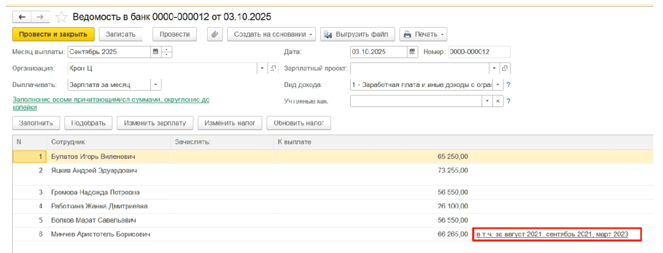 Отдельного внимания заслуживает ситуация, когда в расшифровке ведомости на выплату появляются строки, относящиеся к прошлым отчетным периодам. Чаще всего они отображаются как дополнительные позиции с указанием прежнего года или иного месяца начисления.