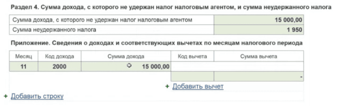 - Наличием суммы в строке неудержанного налога раздела 2.
