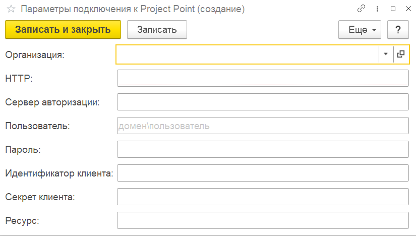Параметры подключения предоставляет Project point. Они являются обязательными для заполнения.