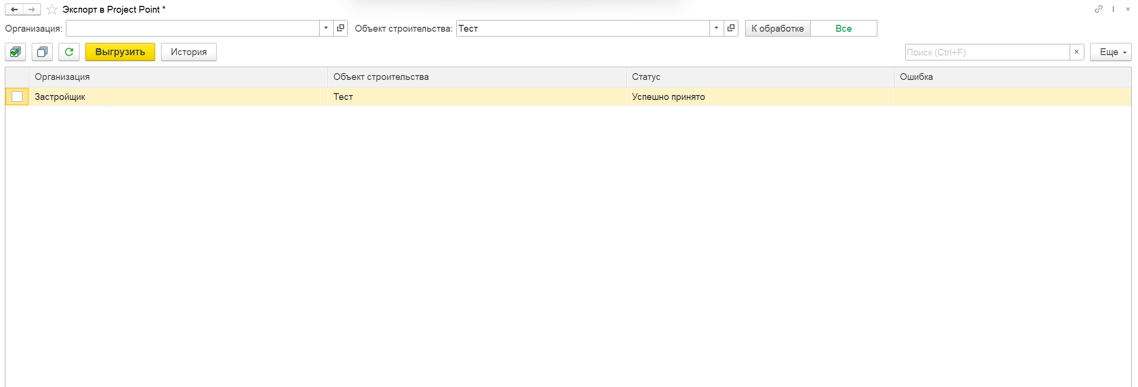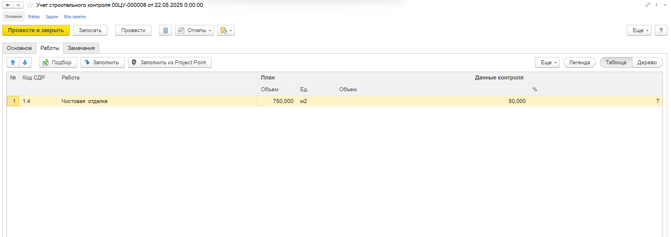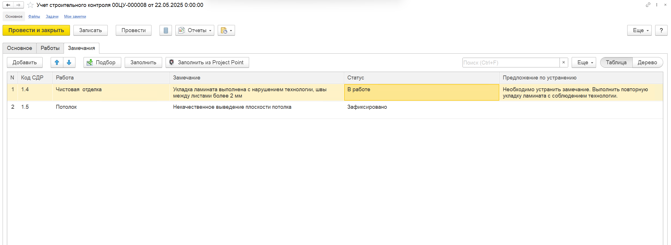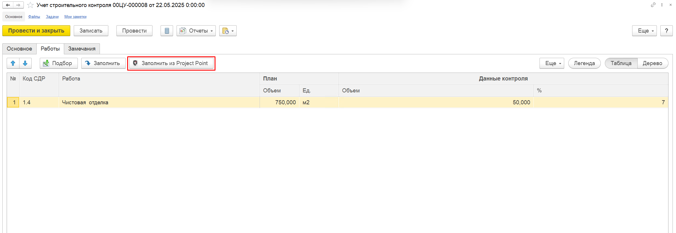 Функционал импорта данных из Project point в документ «Учет строительного контроля»