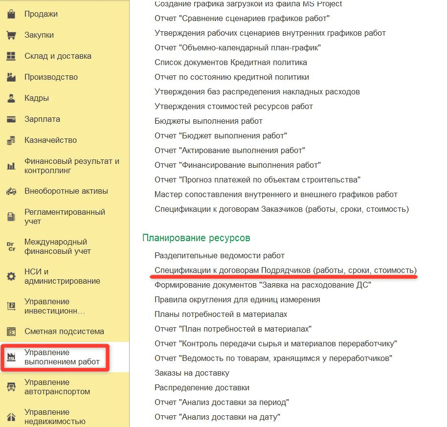 Одним из важнейших инструментов автоматизации этих процессов в строительной отрасли выступает программа «1С:ERP Управление строительной организацией 2». В ней предусмотрен специальный документ — «Спецификация к договору Подрядчика (работы, сроки, стоимость)».