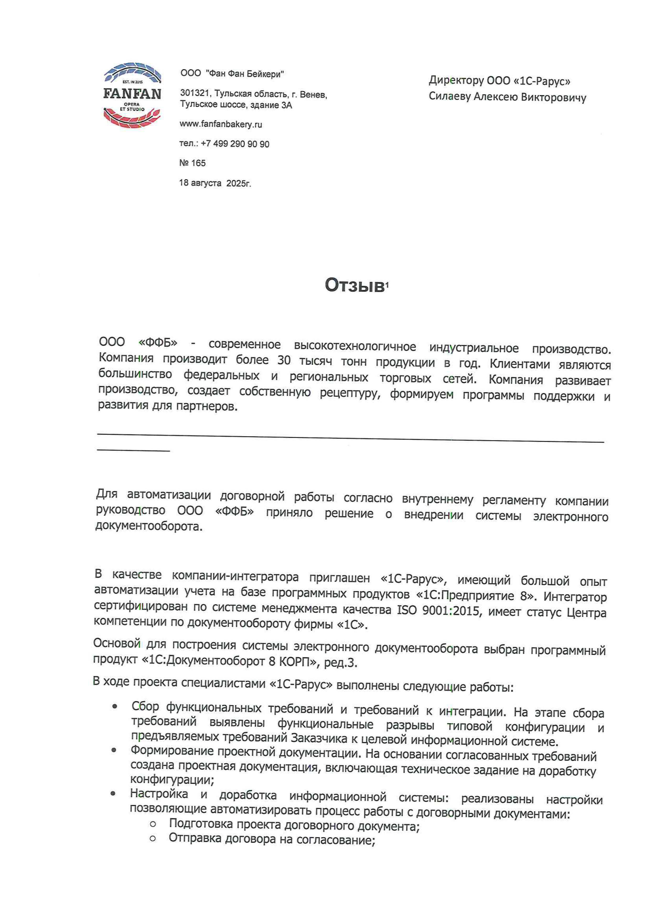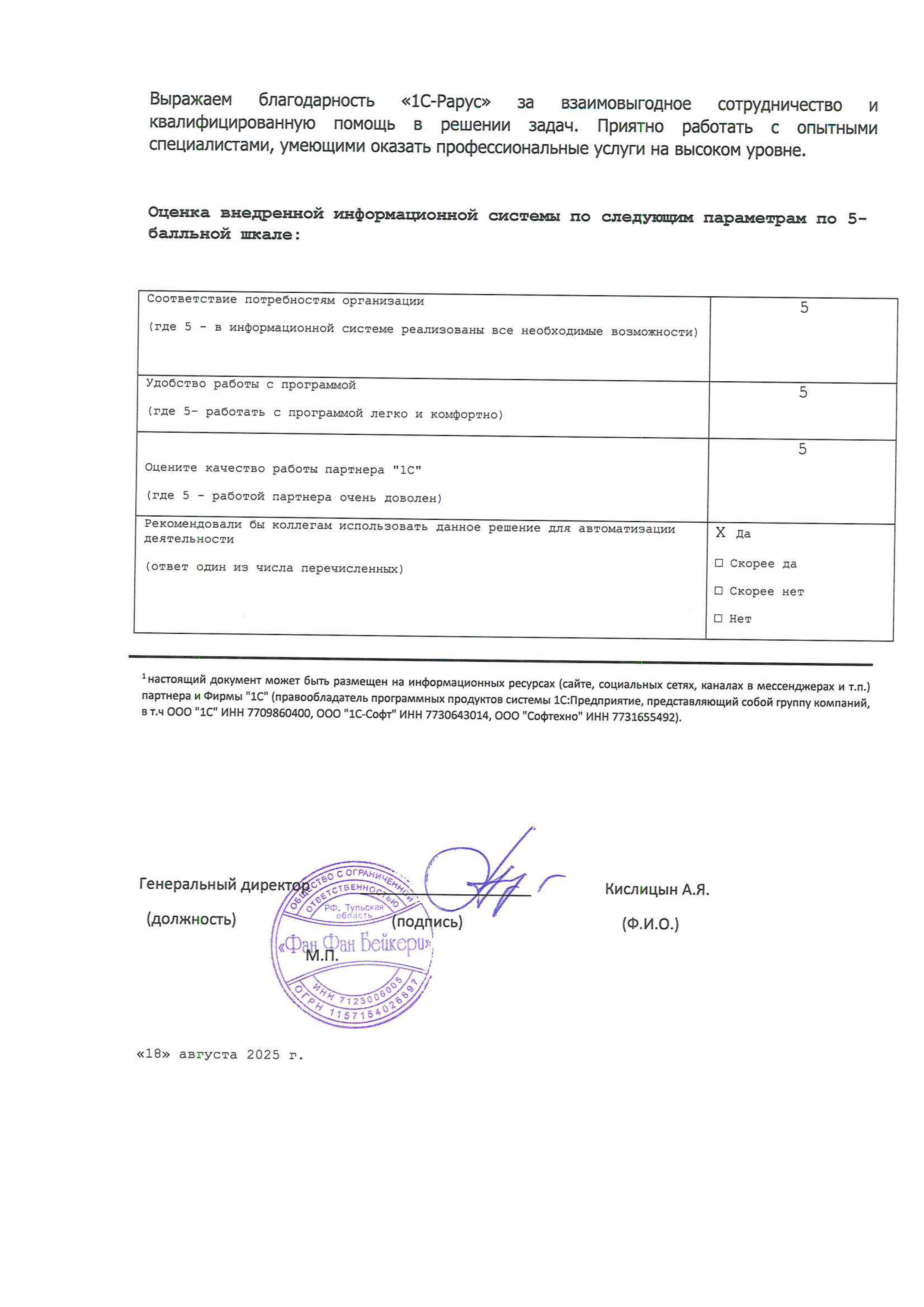 Выражаем благодарность «1С-Рарус» за взаимовыгодное сотрудничество и квалифицированную помощь в решении задач. Приятно работать с опытными специалистами, умеющими оказать профессиональные услуги на высоком уровне.