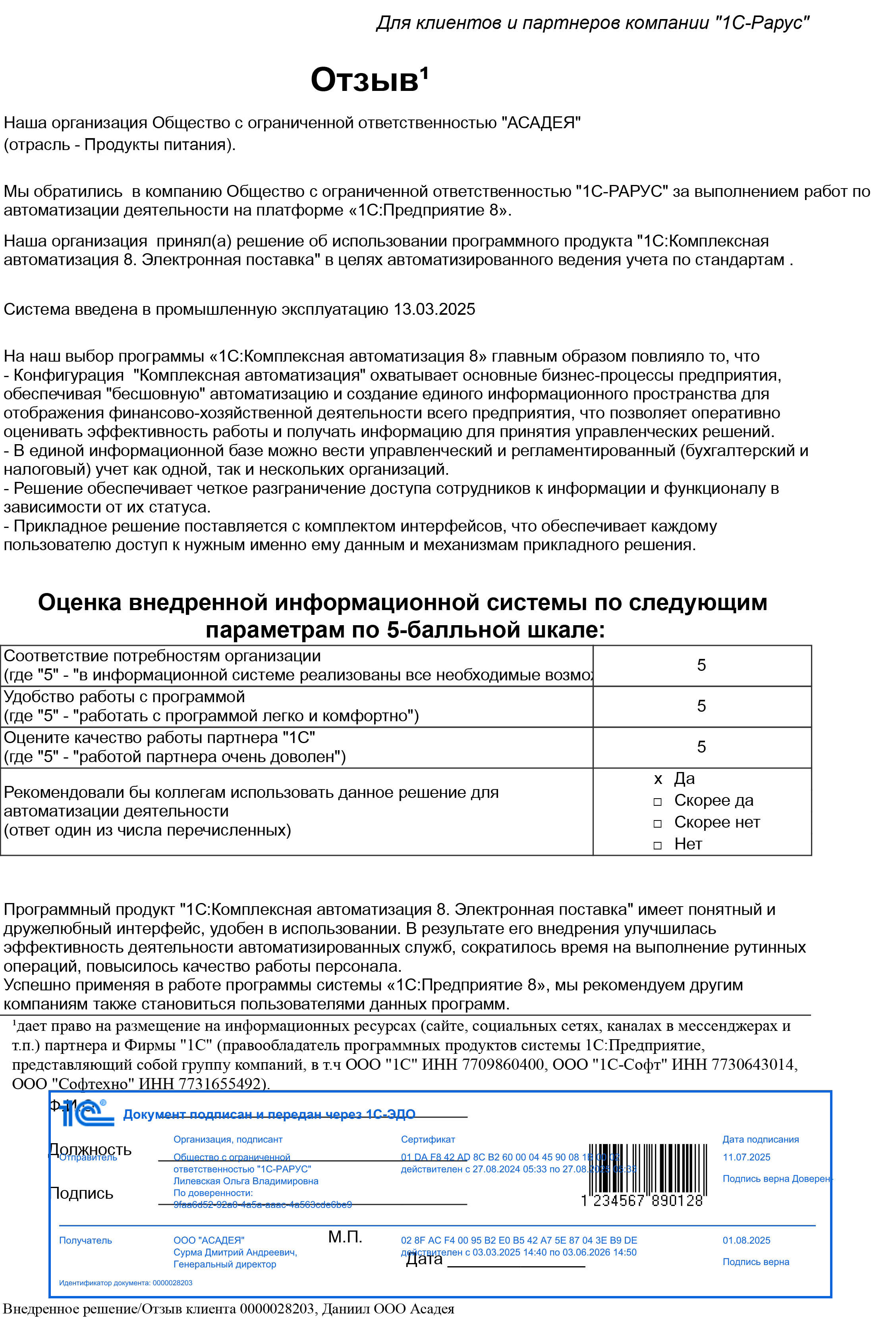 Успешно применяя в работе программы системы «1С:Предприятие 8», мы рекомендуем другим компаниям также становиться пользователями данных программ.